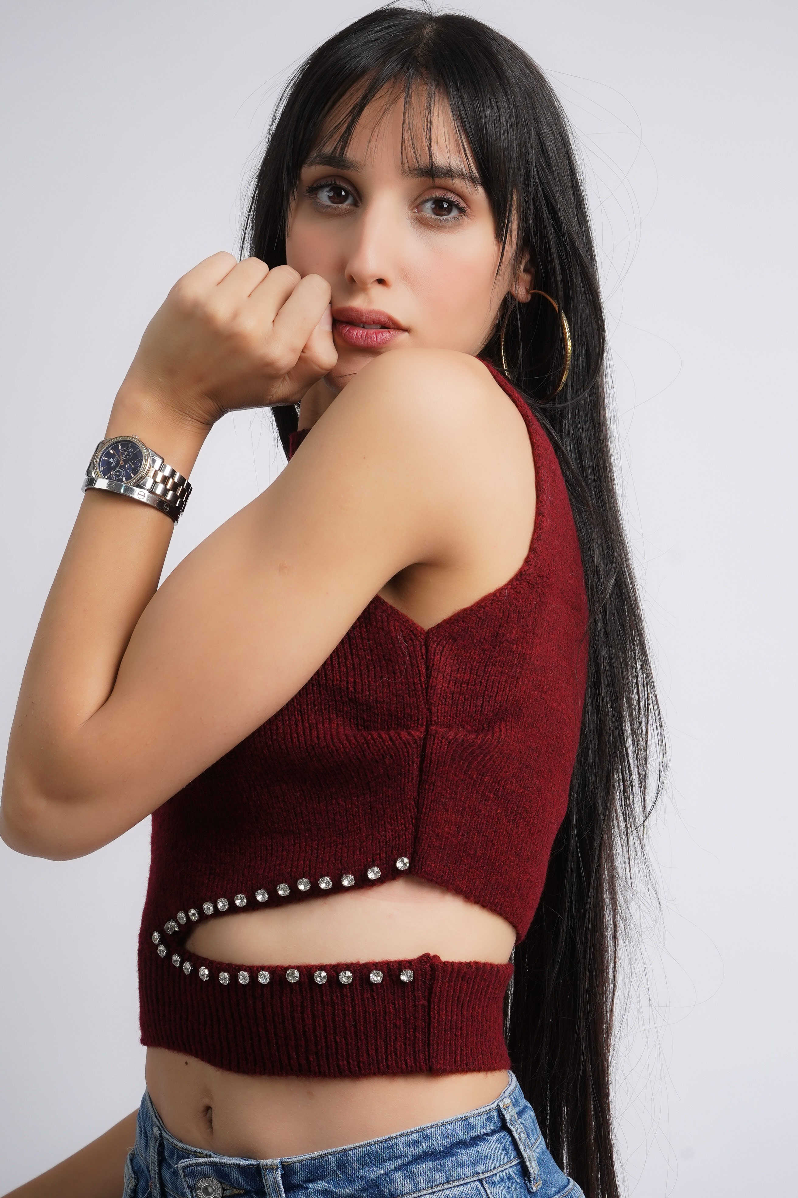 Crop Top sans manches avec bijoux latéraux