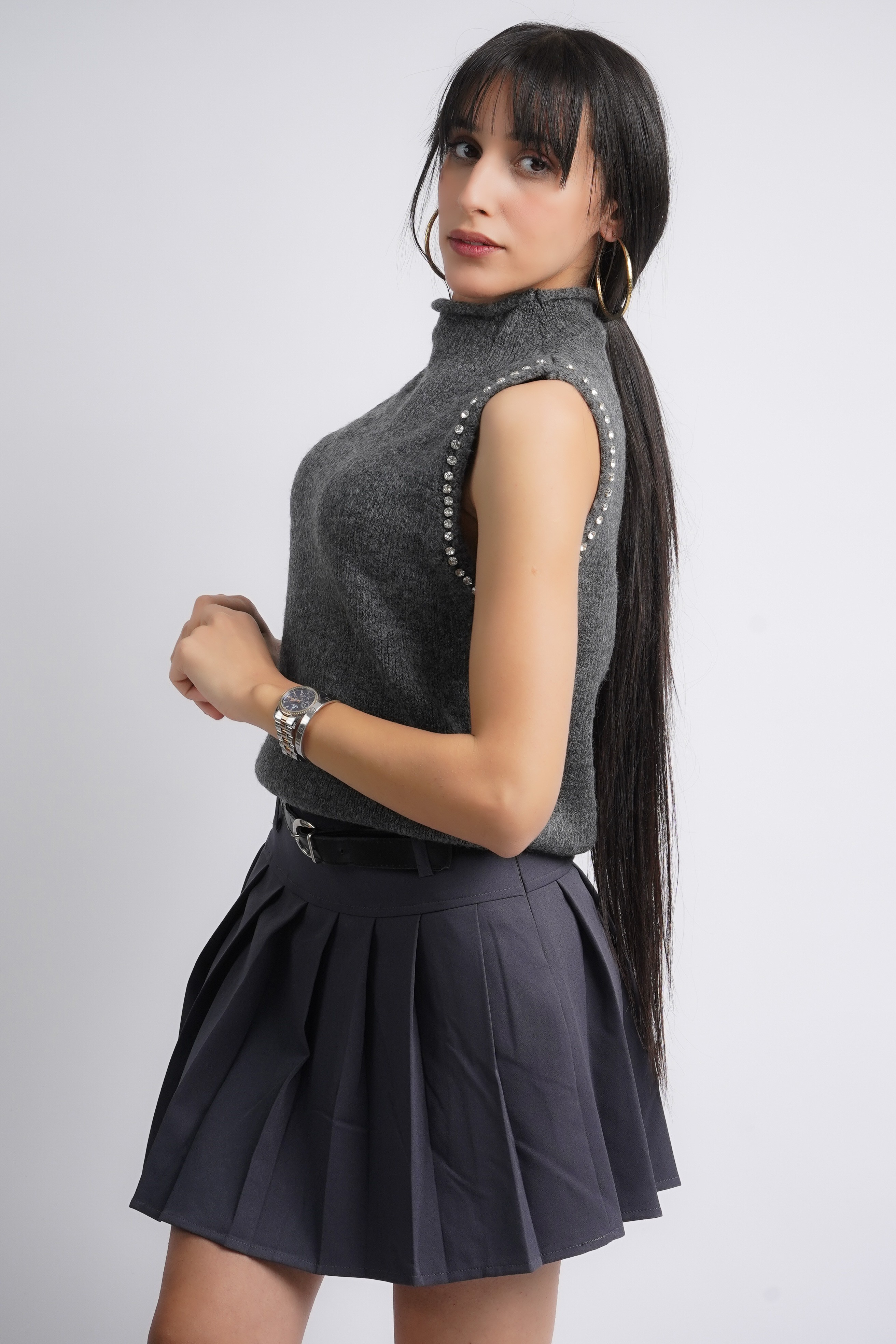 Jupe plissée gris