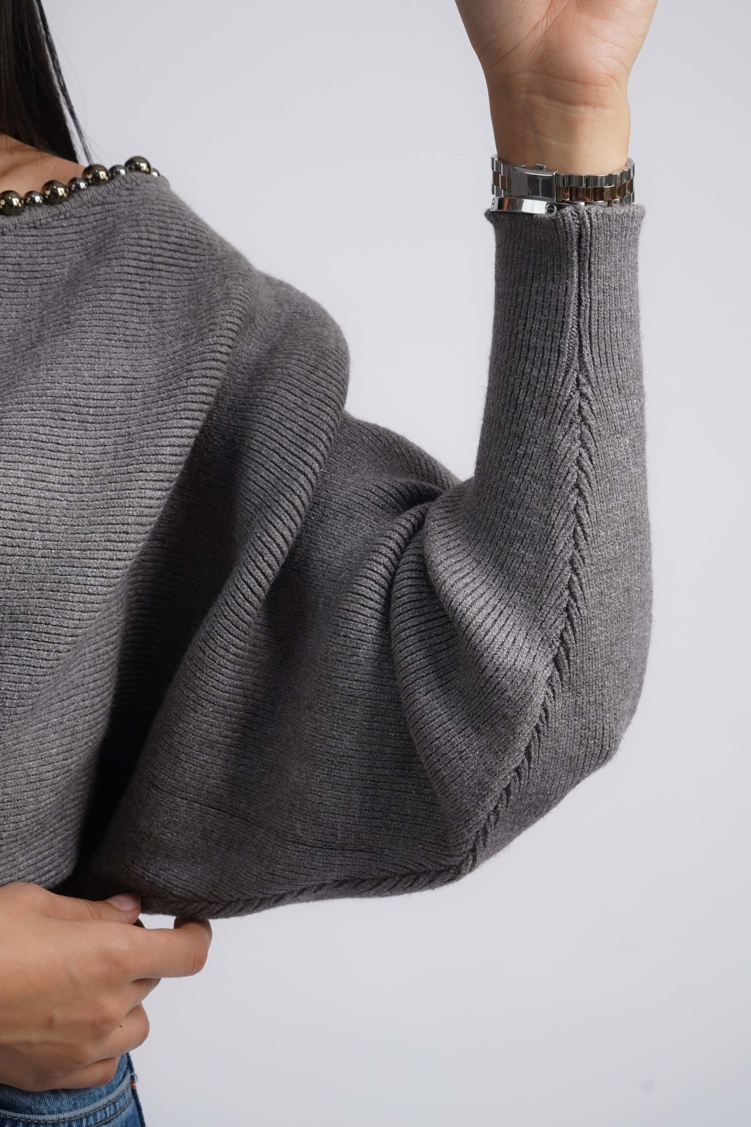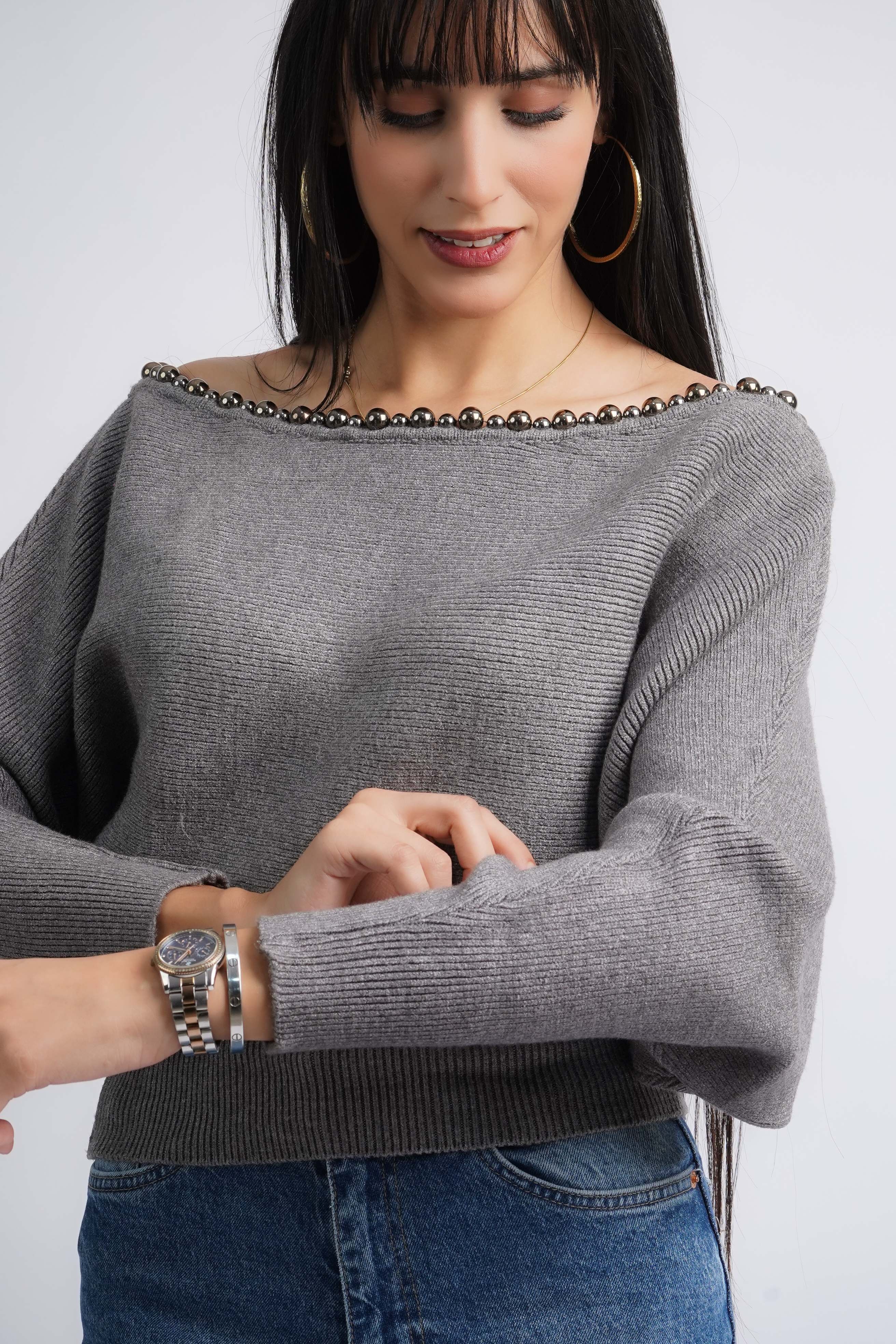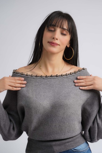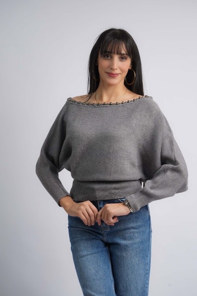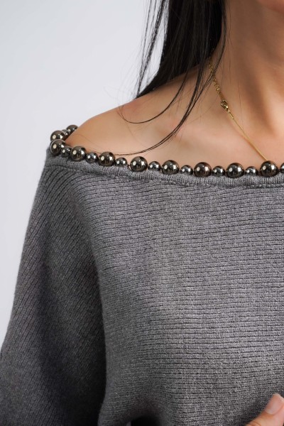 Pull en maille col bateau avec des pierres décoratives