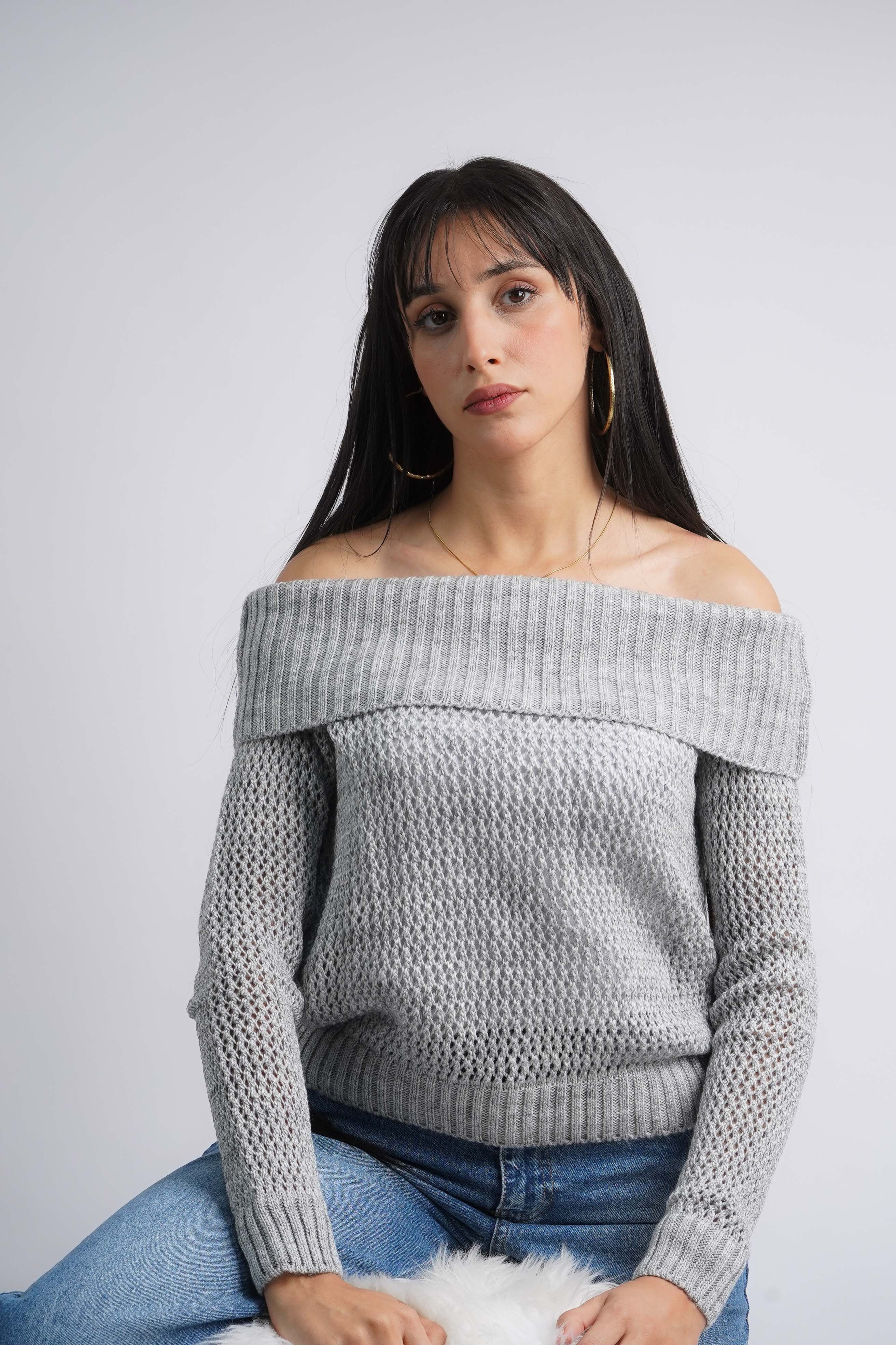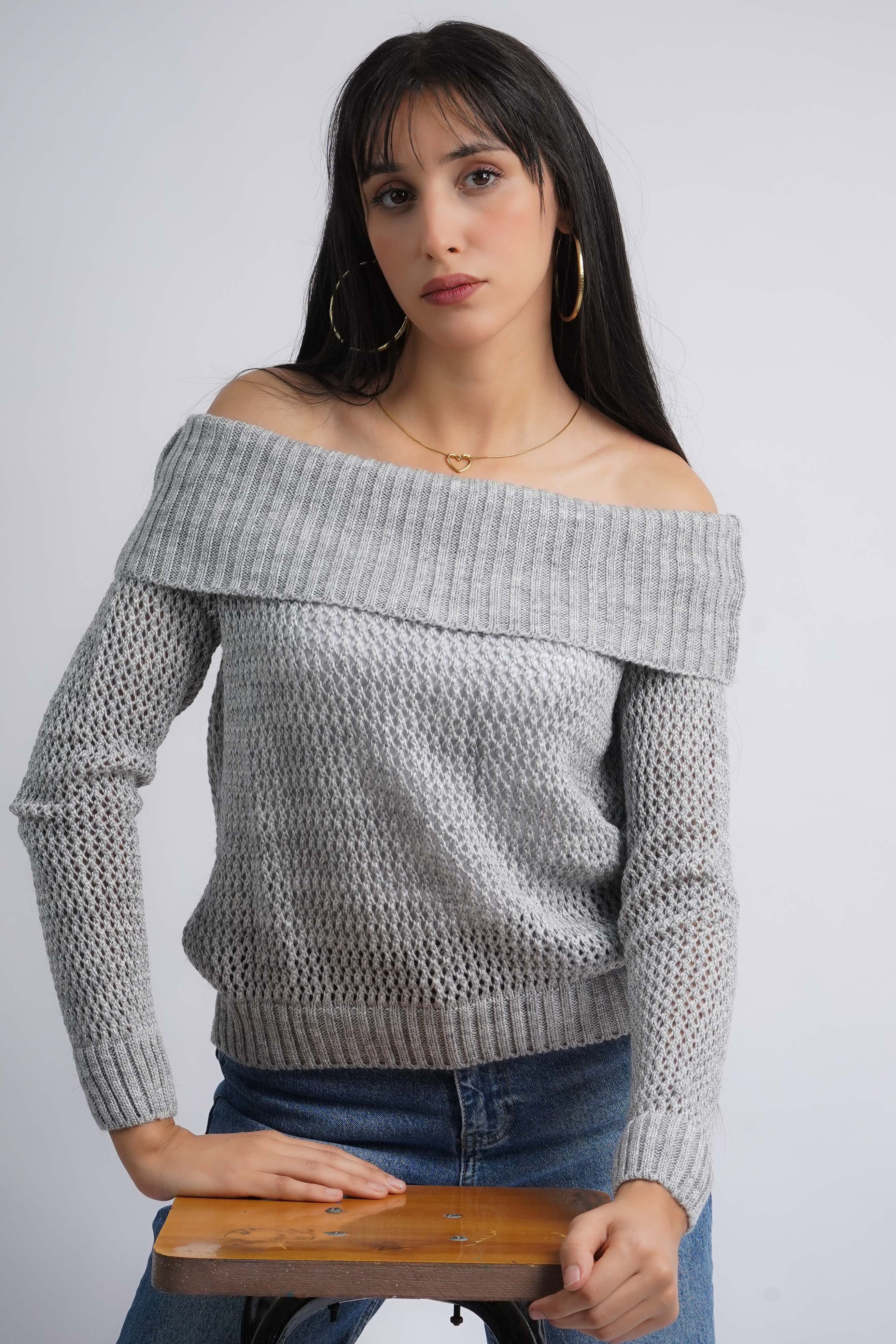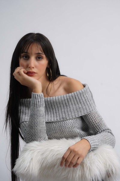 Pull col bateau en croché raffiné